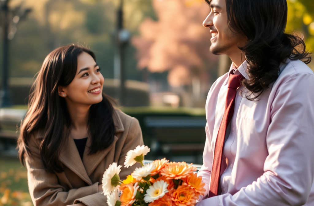 На электричку опаздываете? раздался рядом бодрый голос парня в нарядном костюме и с огромным букетом вишнёвых хризантем.