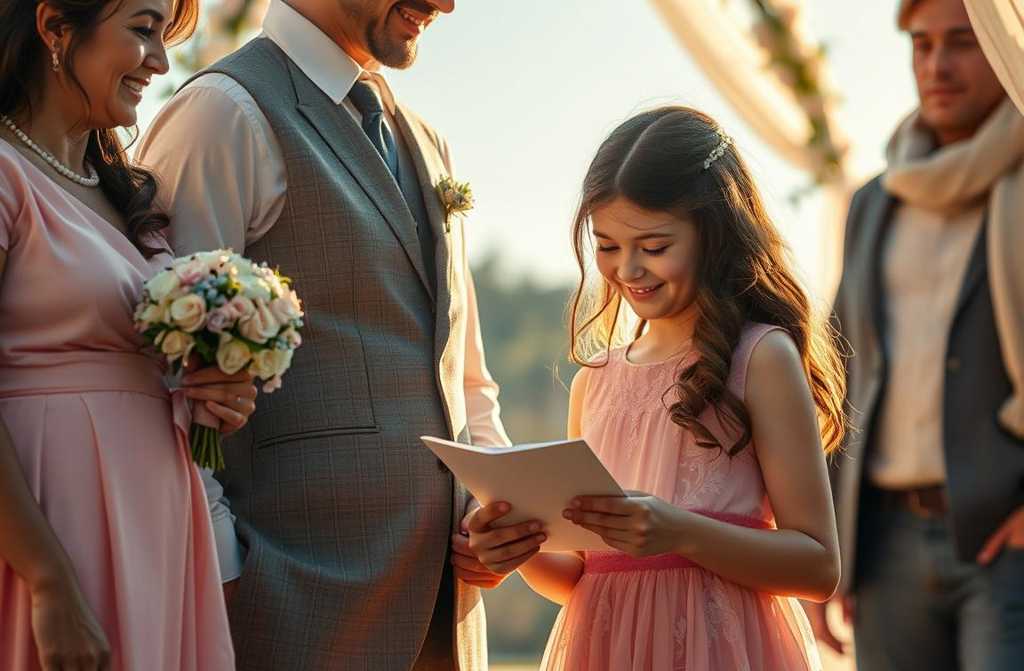 В розовом платье подружки невесты она подошла к микрофону с маленькой коробочкой. «Извините, бабушка Галя. Можно я скажу? Мой новый папа, Дима, дал мне письмо, если кто-то будет обижать маму».