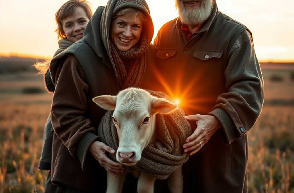 На краю поля, у валуна, где когда-то паслись коровы, стоял крошечный комочек дрожащий от холода и усталости. Дед Тимофей прищурился, подошел ближе и сердце у него сжалось: у самой дороги копошился телёнок, совсем один, с испуганными, влажными глазами, едва слышно мычащий. Судя по всему, мать либо ушла, либо пропала, а малышу пришлось остаться, словно вовсе забытом.