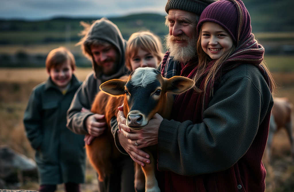 На краю поля, возле старого булыжника, у которого раньше паслись коровы, сидело что-то совсем маленькое крошечное, дрожащее от холода и усталости. Дед Алексей прищурился, подошёл поближе и сердце его сжалось: перед ним стоял телёнок, совсем один, с перепуганными и огромными глазами, жалобно подвывающий. Казалось, корова-мать куда-то ушла или пропала, а малыш остался на поле, будто его и вовсе забыли.