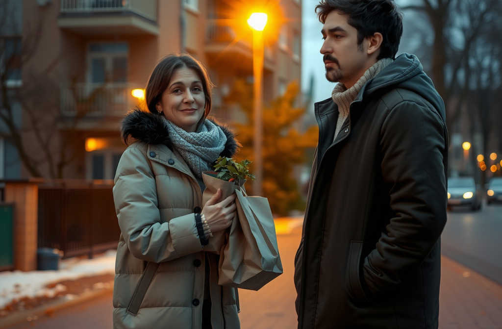 Максим стоял посреди двора, чувствуя, как ветер пронизывает насквозь. За её окнами на кухне тёпло светилась настольная лампа, и было видно, как Яна ставит продукты на стол.