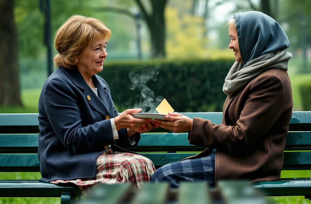 В один мрачный вторник, когда небо угрюмо хмурилось, 73летняя Мария укутала шапку поглубже и шла по парку, чувствуя, как колени пульсируют, а дыхание сыпется, но руки всё ещё крепко держали горячую тарелку.