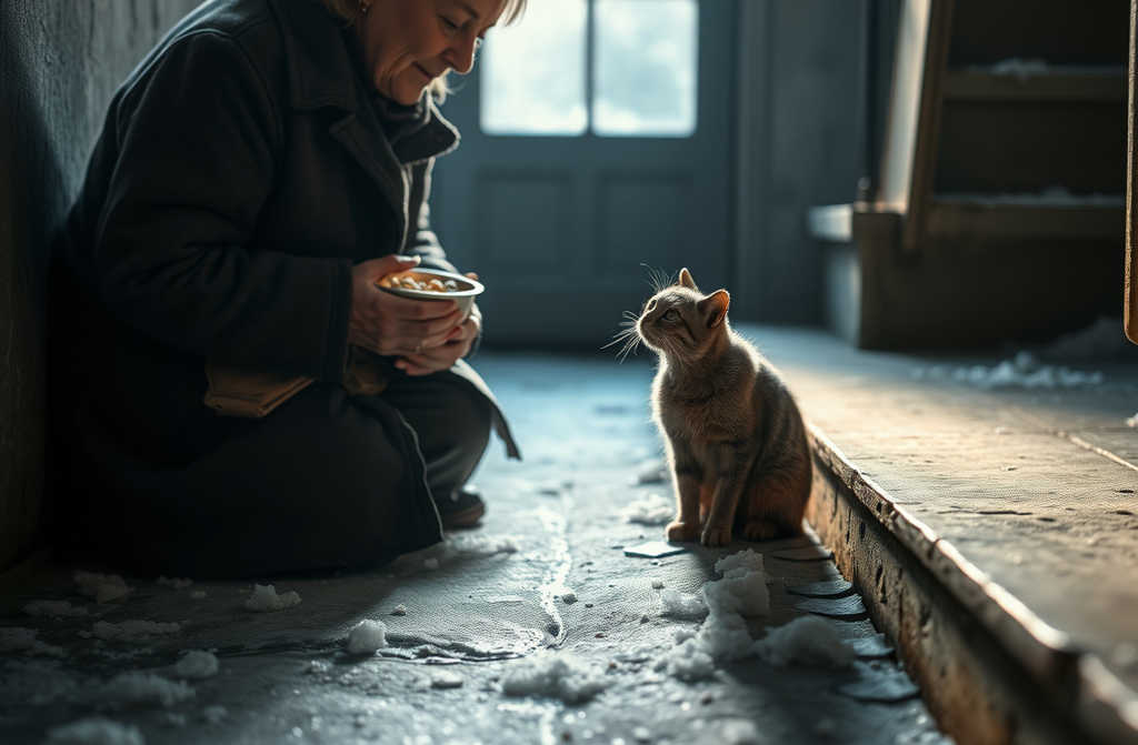 Кот, впервые за долгое время сытый и в тепле, решил: это его дом, а строгая, но добрая женщина его хозяйка.