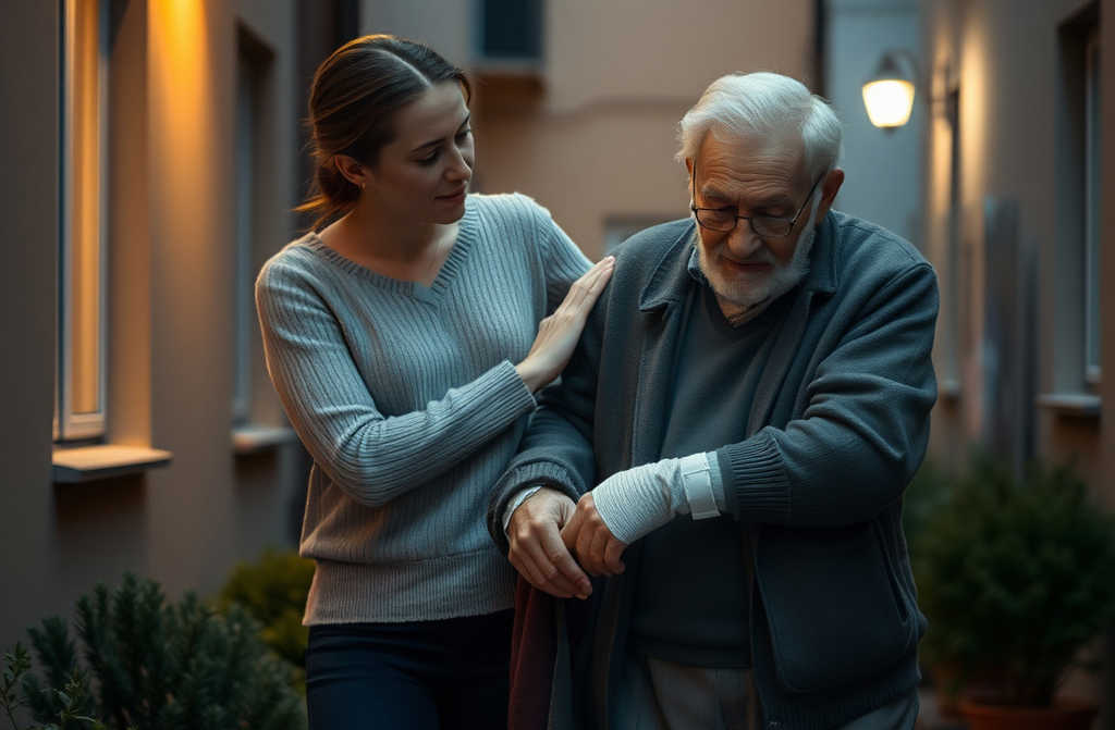 Я достал из рюкзака влажные салфетки и начал аккуратно вытирать ему кровь с рук честно говоря, было жалко и свою одежду, и его. После этого попытался приподнять деда. На мой вопрос, где он живёт, адрес он всё равно не смог толком назвать, только снова начал бормотать и жестикулировать в сторону многоэтажки во дворе. Видимо, он так показывал путь.