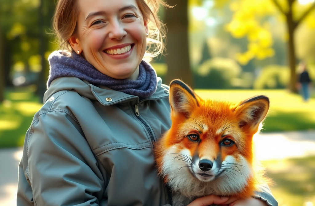 2. На днях в городском парке моя знакомая Олеся остановилась, чтобы поиграть с рыжей лисой, которой доверяет уже не первый год. Выглядело это очень трогательно.