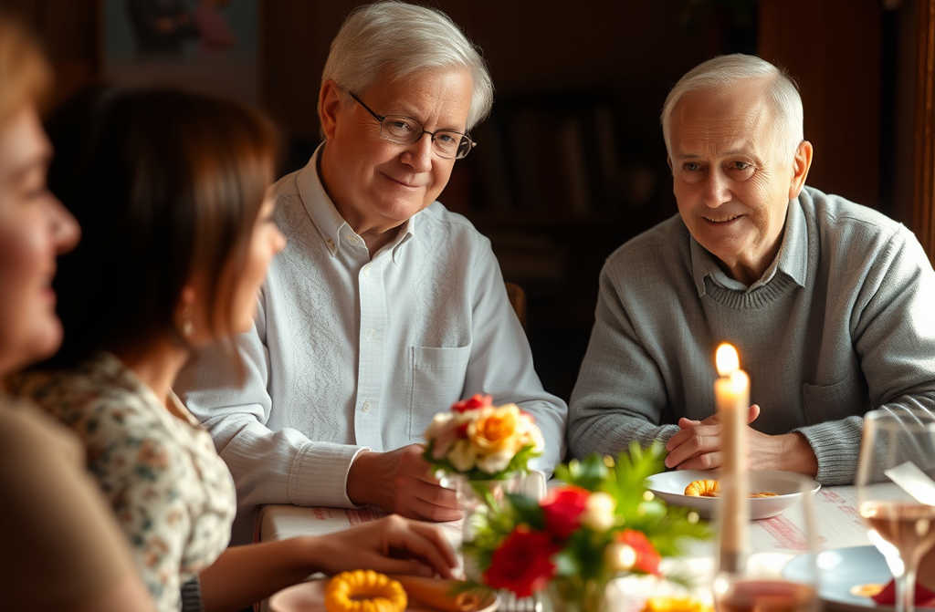 Гости перешёптываются: все всё знают, но тосты льются за счастье, за долгую любовь, за дважды по двадцать пять лет. Михаил говорит речь, потом разливает водку, хлопает по столу