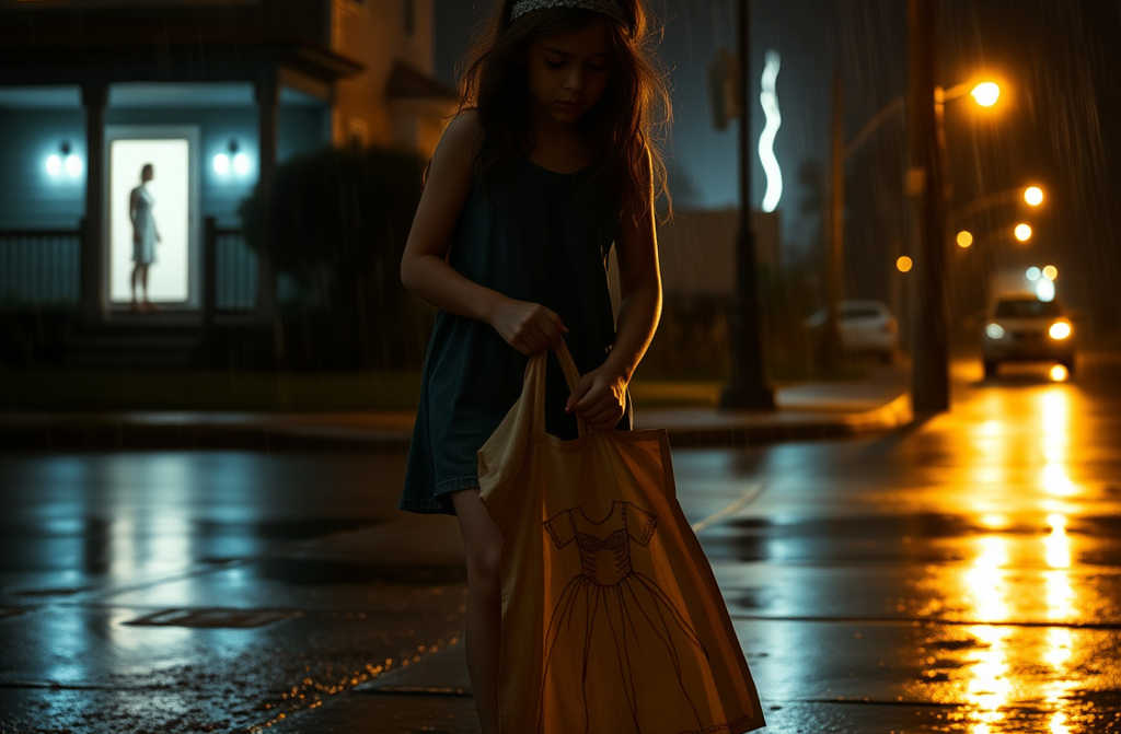Сзади в бурю пронзительно звучал крик Галины: «Убирайся! Я не стану кормить оброкованную паразиту!» Молния раскалывала тёмное небо, показывая хрупкую фигурку, скользящую по гололёдной тропинке. Ни крыши, ни родных, лишь слабая вера, что Бог всё ещё смотрит. На обочине разбился старый зеркало, а дождь смешался с кровью на её колене. В дрожащих руках смоченный рисунок платья, вышитого золотой нитью.
