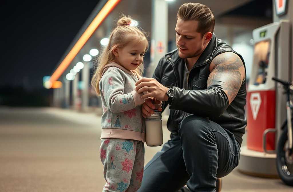 Босоногая, не старше шести лет, стояла посреди ночи на заправке в грязной пижаме с мультяшными принцессами. Слезы оставляли светлые дорожки на ее запыленных щеках. Я только что проехал шестьсот километров, усталый, мечтая добраться до дома, но дрожь в ее голосе заставила меня остановиться. Она выбрала *меня* бородатого байкера в косухе а не прилично одетую пару у соседней колонки.