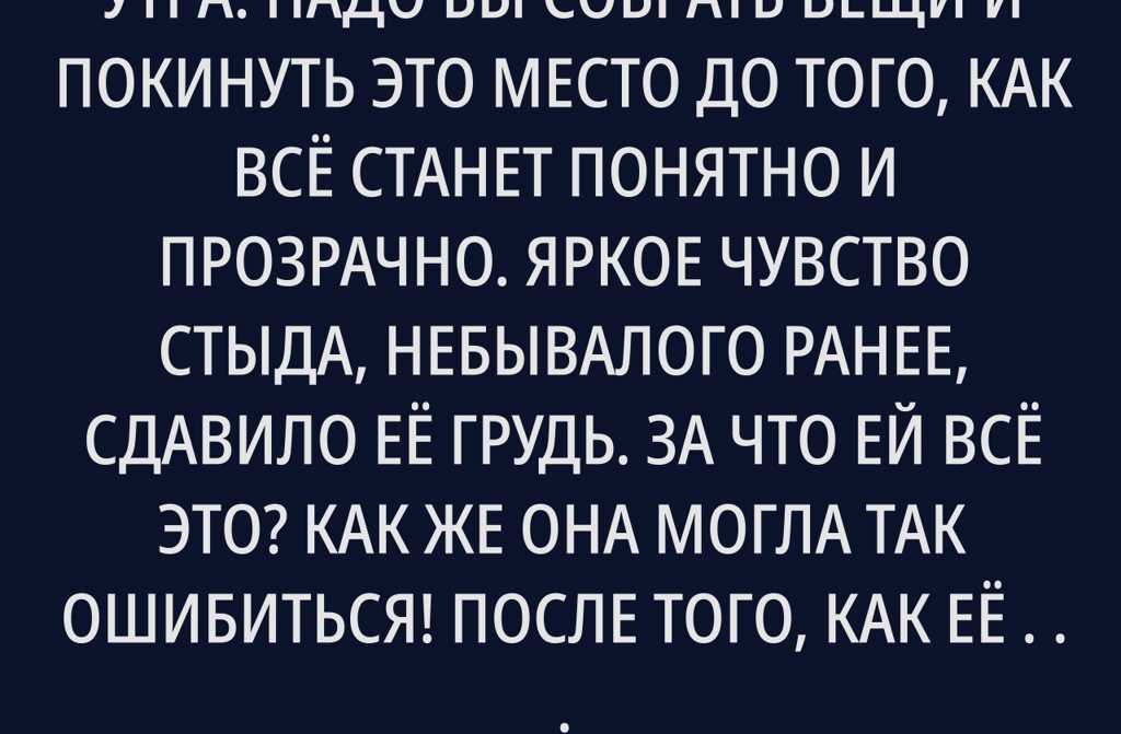 Диана проснулась в полпятого утра. Надо бы собрать вещи и покинуть это место до того, как всё станет понятно и прозрачно. Яркое чувство стыда, небывалого ранее, сдавило её грудь. За что ей всё это? Как же она могла так ошибиться!