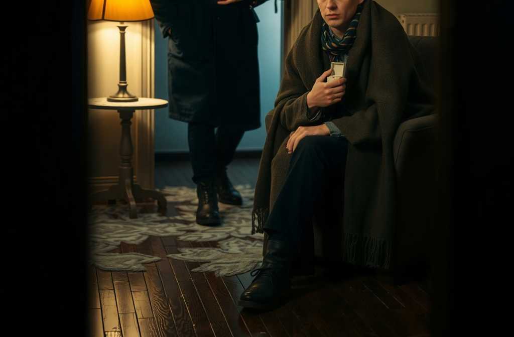 В этот момент дверь раздалась звонко и неожиданно, так, что я невольно вздрогнул и чуточку крепче зажал плед. Время было без десяти семь вечера. В голову сразу полезли вопросы: кто может прийти в такой час? Может, сосед Вася опять затопил кухню или курьер привёз забытый мной букет?