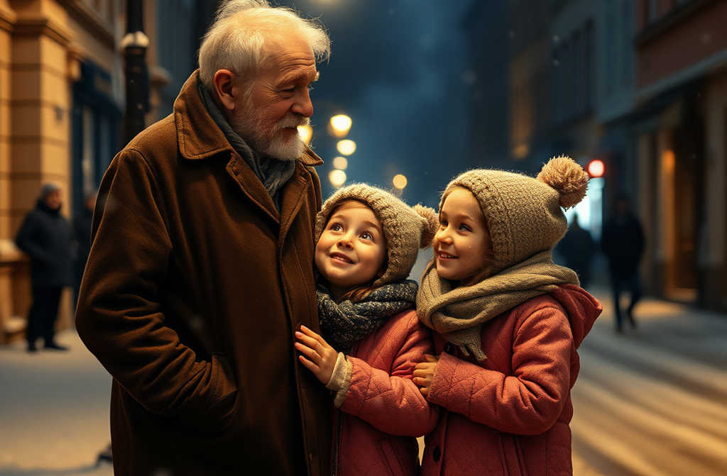 Не метель заморозила его кровь, а их одежда: старомодные шерстяные бордовые сарафаны с белыми воротничками, тонкие носочки, поношенные коричневые ботиночки будто отдали детям по ошибке. На них не было пальто, ни шапки, ни намека на взрослого рядом. Две хрупкие фигурки, чья достоинство было лишь еле-еле прикрыто старыми платьями, а в глазах отражался оставленный надежде.
