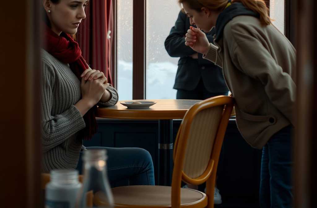 Лена уронила ложку. Настя тут же подцепила ложку, лукаво блеснула глазами и шутливым жестом запустила сестре в лоб по-детски. Те же привычки