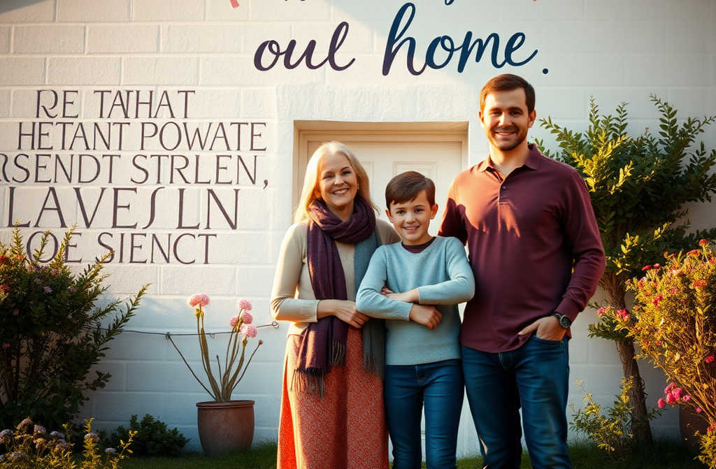 Потом вывел нас во двор, где на стене дома красовалась огромная картина: корзинка у калитки, женщина с сияющим лицом, держащая ребёнка, а над ними фраза жестами: “Спасибо, мама”.