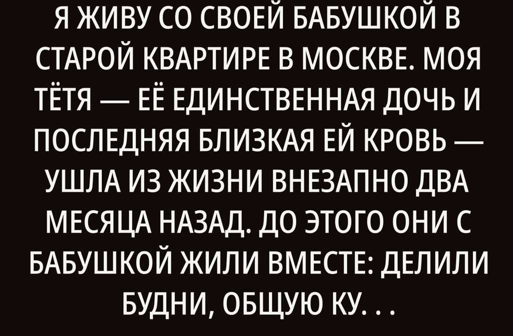 Мне 25 лет, и вот уже два месяца я живу со своей бабушкой в старой квартире в Москве.