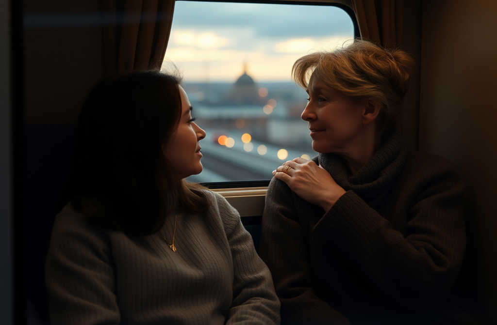 До ухода поезда оставался час. Я сидел у окна, наблюдая, как платформа уходит назад, как мелькают фонари и гаражи, серые дома окраин. Мама дремала рядом, уронив голову мне на плечо, вымотанная сборами и последним разговором.