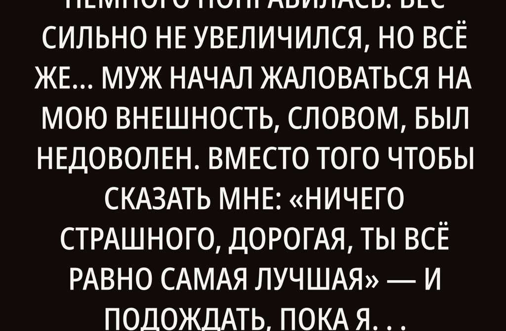 После рождения сына я немного поправилась. Вес сильно не увеличился, но всё же Муж начал жаловаться на мою внешность, словом, был недоволен.