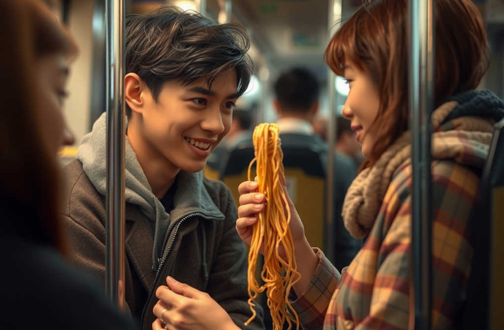 Мои лапша оказалась повсюду, даже в шикарной прическе соседки снизу. Длинные макароны покрыли весь вагон. Хотелось одновременно смеяться и плакать.