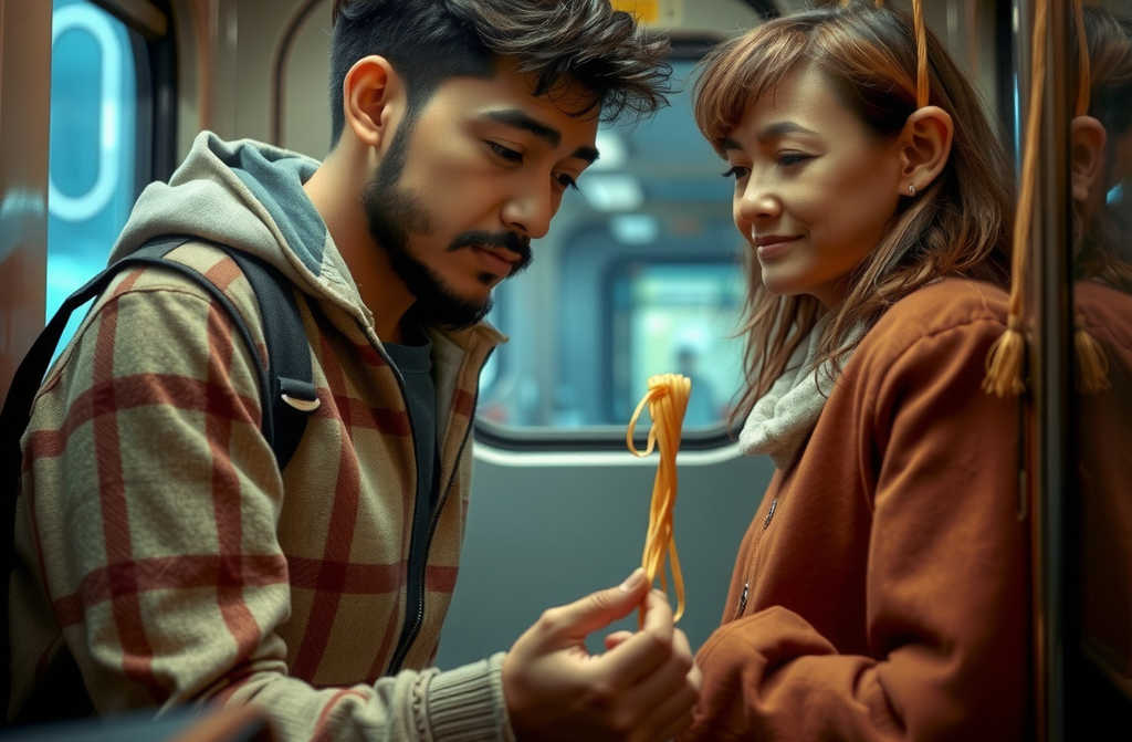 Нудли раскинулись как занавес на свадьбе: длинные полосы доширака украшали прическу соседки, а несколько горячих обрывков даже справились с её начёсом. Хотелось одновременно плакать и хохотать.