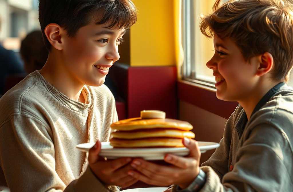 Это должно было быть обычное воскресное утро только мой сын Артём, я и стопка блинов, от которой у него загорелись глаза. Но среди звонка тарелок и приглушённых разговоров в кафе «У Марины» случилось нечто необыкновенное. Нечто, что напомнило мне: детское сердце видит то, что взрослые часто упускают.