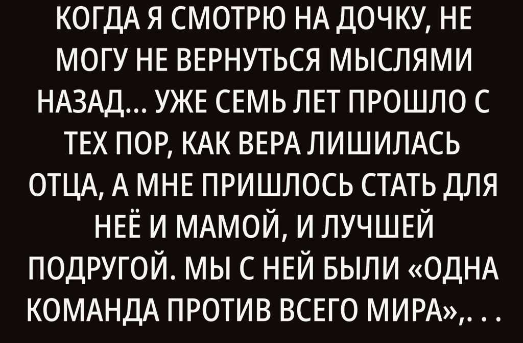 Сегодня, когда я смотрю на дочку, не могу не вернуться мыслями назад… Уже семь лет прошло с тех пор, как Вера лишилась отца, а мне пришлось стать для неё и мамой, и лучшей подругой. Мы с ней были «одна команда против всего мира», пока не появился Пётр.