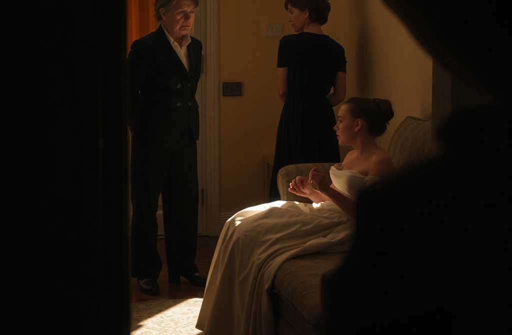 Аня стояла перед большим зеркалом, ожидая, пока подруга-стилист Мария закончит закреплять фату. Последние заколки были аккуратно воткнуты в сложную прическу, и Аня повернулась к матери.