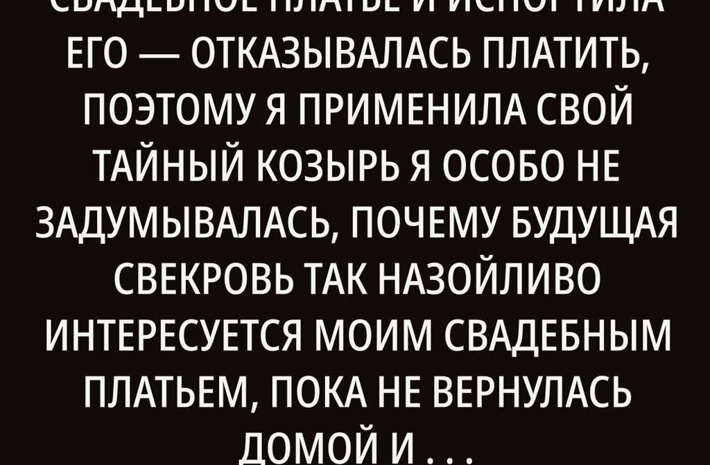 Я особо не задумывалась, почему будущая свекровь так назойливо интересуется моим свадебным платьем, пока не вернулась домой и не увидела платья за 80000 гривен больше нет! Она примерила его, испортила и платить не захотела. В отчаянии и злости я пошла на решающий шаг и всё изменилось.