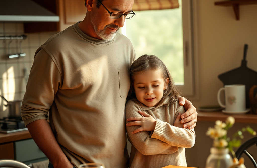 И тут Варя просто разрыдалась, уцепилась за стол, а потом бросилась ко мне обнять, плакать, как будто ждала разрешения и на чувства тоже. Я обняла её, она сразу прижалась, уткнулась в плечо, дрожит вся. Сижу, глажу по спине, шепчу: «Всё хорошо, ты дома, ты в безопасности. Ничего не сделала плохого». От этого она ещё сильнее заплакала слёзы льёт, будто всю боль за год накопила. Это не капризы от лужи в прихожей, тут страх и печаль, не детские совсем.
