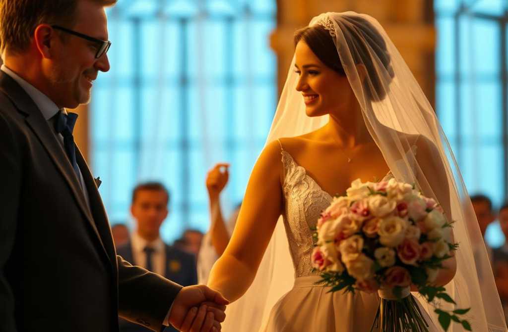 Церемония началась под тихие звуки рояля. Гости встали, когда появилась невеста, её лицо скрывала длинная фата. Аленка прижалась ко мне и прошептала: «Пап, какое красивое платье». Я кивнул, улыбаясь, но в груди защемило. Походка невесты, поворот плеч что-то в ней было до боли знакомое.