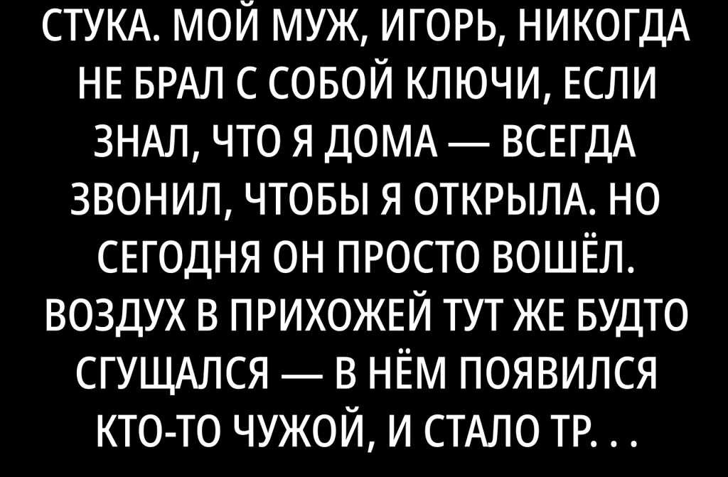 Дверь распахнулась резко, без стука. Мой муж, Игорь, никогда не брал с собой ключи, если знал, что я дома всегда звонил, чтобы я открыла. Но сегодня он просто вошёл.