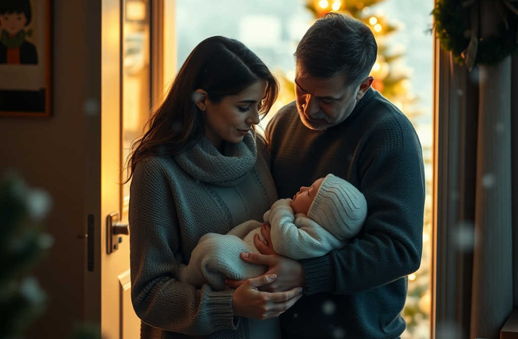 Мария отстраняется: не прогонять же с младенцем сразу! Он протискивается в открытый дом, они идут в спальню, где муж кладёт спящего малыша на кровать.
