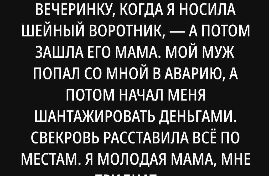 Я молодая мама, мне тридцать три, и теперь на мне странный воротник, потому что муж Пётр (ему тридцать четыре) не смог устоять и листал «ВКонтакте» на светофоре. Теперь он угрожает мне, что перекроет доступ к деньгам, пока я восстанавливаюсь. Я была уверена, что оказалась в ловушке, пока судьба не завела в дом кое-кого из семьи.