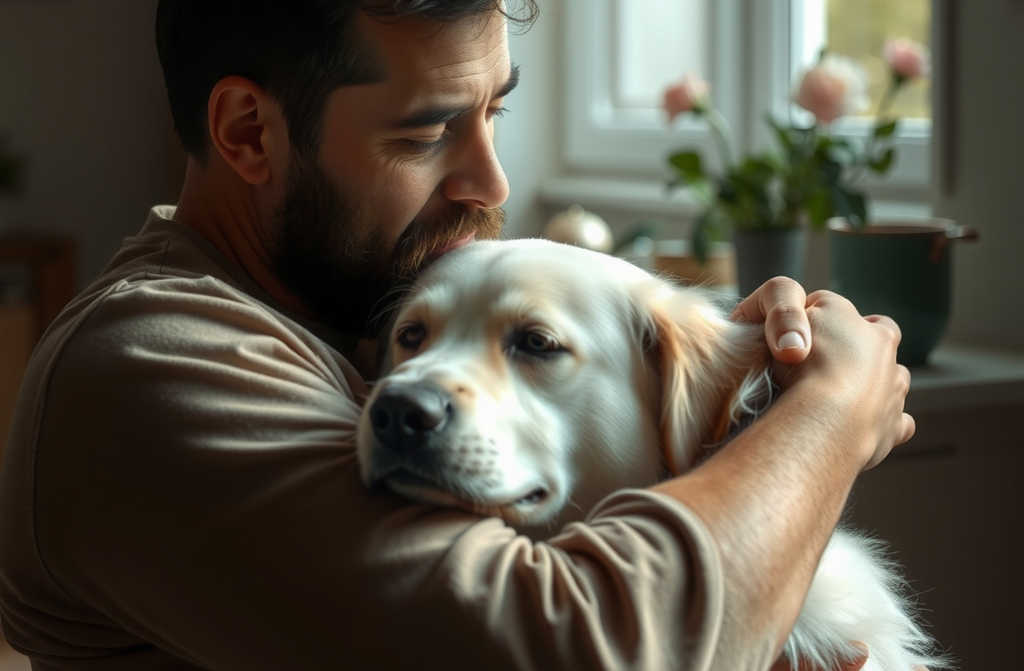 Мужчина не сдерживает слёз, прощаясь со своим верным псом, с которым прожил вместе 14 лет