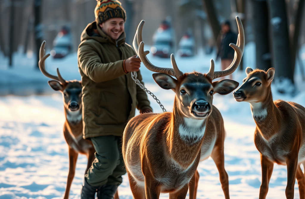 Ему пришлось приложить немало усилий лед трещал под ногами, пальцы немели от холода, но решимость не позволяла отступить. Почти не дыша, он прокладывал дорогу для животных, вырубая путь к безопасному берегу. Наконец, когда последний олень оказался на твёрдом снегу, Игорь облегчённо выдохнул. Лёгкая улыбка скользнула по его усталым губам: эти животные обрели вторую жизнь благодаря его бескорыстной отваге.