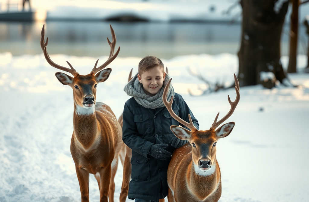 В следующей сцене видится, будто Илья плавно скользит к лосю, как будто лед сам направляет его шаги. Он осторожно завязывает веревку на шею одного из гигантов и тащит его, почти не касаясь поверхности, к безопасному берегу. Лес стоял в молчании, но казалось, что ветви шептали слова благодарности.