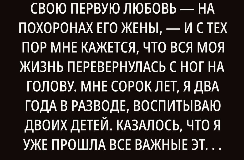 Неделю назад я снова увидела свою первую любовь на похоронах его жены, и с тех пор мне кажется, что вся моя жизнь перевернулась с ног на голову. Мне сорок лет, я два года в разводе, воспитываю двоих детей. Казалось, что я уже прошла все важные этапы, связанные с любовью, что все истории завершены и прошлое оставлено позади. Но стоило снова встретиться взглядами, и я поняла: некоторые чувства никогда полностью не исчезают.