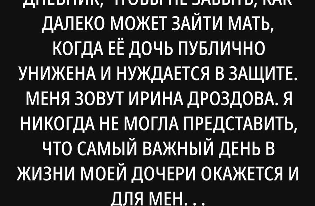 Записываю этот день в дневник, чтобы не забыть, как далеко может зайти мать, когда её дочь публично унижена и нуждается в защите.