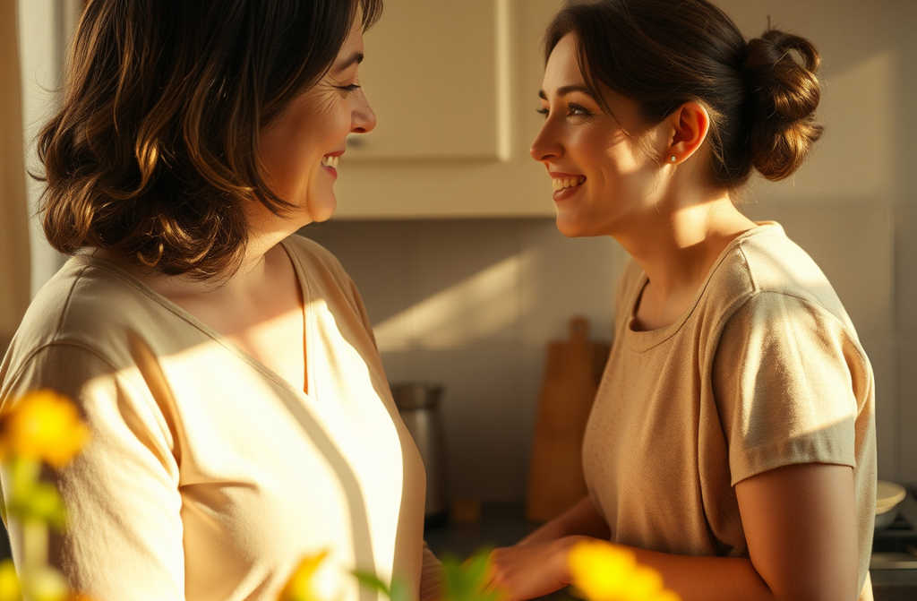 Мать кладёт руку на плечо дочери.