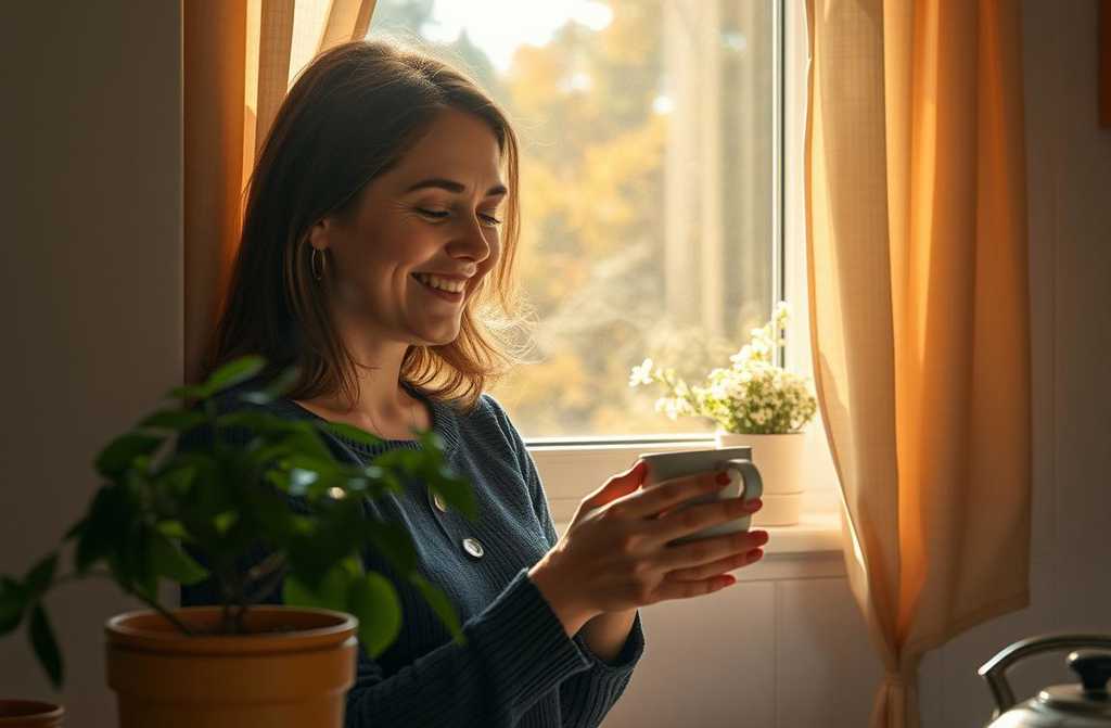 В тот же день она сняла тяжёлые шторы, выбросила старый фарфор, купила новый чайник, перекрасила кухню в светлый цвет, положила ковёр, о котором давно мечтала, но «не подходил к дивану». Поставила горшок с ярким растением на подоконник.