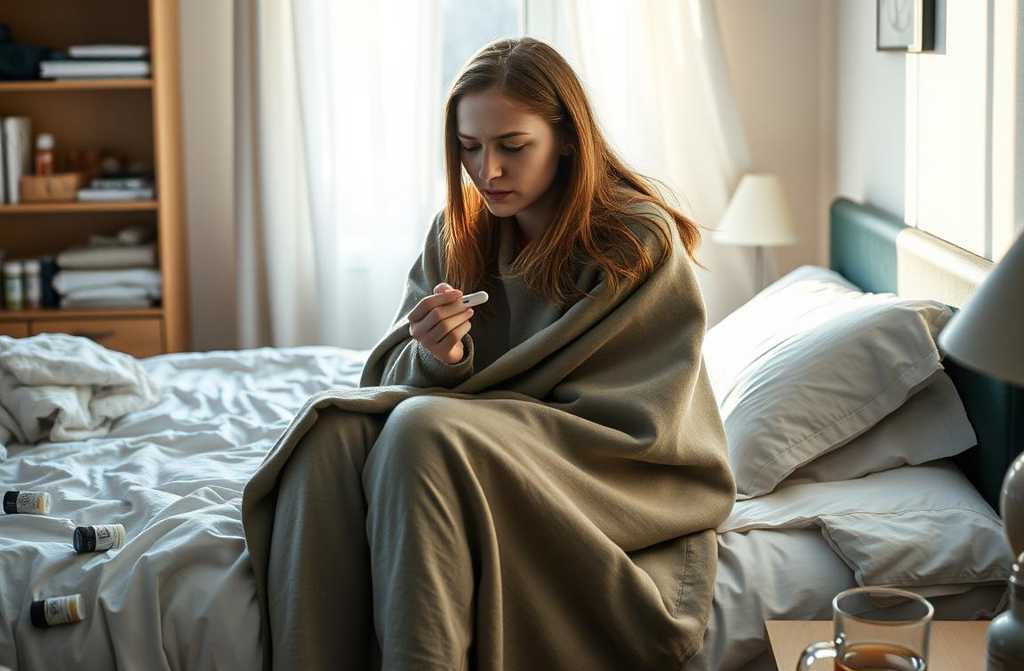 Лена с трудом поднялась, нашла градусник, включила чайник и задумалась