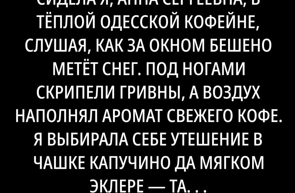 За окном идет густой снег. Мария с удовольствием отпивает горячий кофе. За соседним столиком расположились две девушки, судя по всему, близкие подруги.