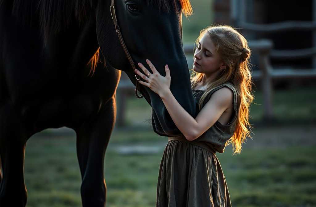 Аглая встаёт, её ноги дрожат, но она идёт к коню. Он стоит, голова поднята, глаза светятся. Она наклоняется, кладёт руку на шкуру, и в её сердце звучит тихий голос: Мы оба нашли друг друга, когда мир отвернулсь.
