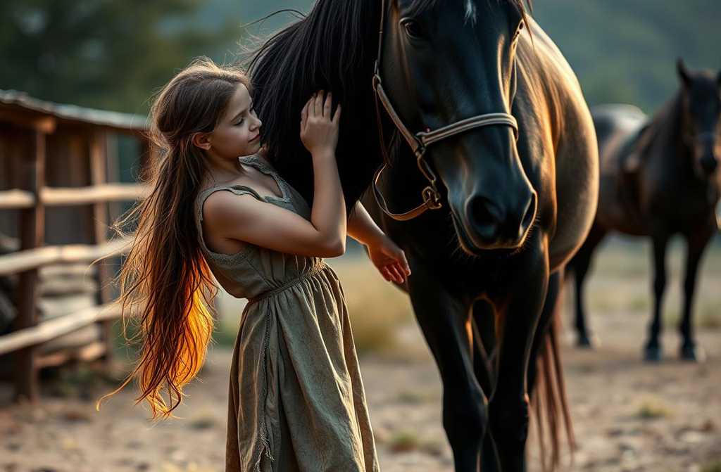 Старый Буря, уже не такой молодой, всё же иногда поднимал голову и принимал лёгкий удар её руки. Иногда, когда солнце золотило горизонт, она садилась на его спину и медленно шла вдоль крутого холма, где в детстве прятала цветы между камнями. Их тень скользила по полям, а ветер шептал: «Вот так, девочка, так и живём без страха, без ярости, только с пониманием».