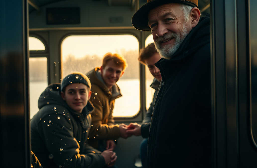 Двери московского троллейбуса сомкнулись, словно меха старой гармошки, и густой пар выдохнул из салона прямо в тёмную летнюю ночь, где звёзды, кажется, подсматривали за происходящим. Пятеро разгульных парней ворвались внутрь, громыхая валенками и разбрызгивая бордовую грязь по всему: от ступеней и поручней до чужих ног.