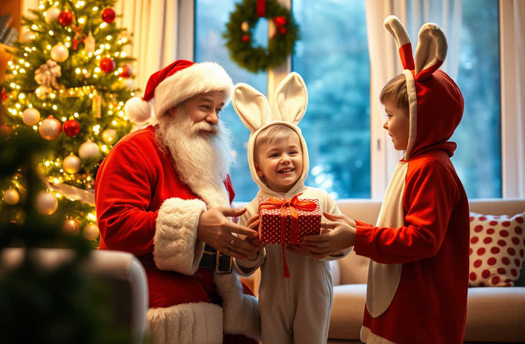 Зайчиком! прокричал Андрюша и умчался в комнату. Через минуту появился в белоснежном комбинезоне, с ушами, помпончиком хвоста и картонной маской. Весь в образе новогоднего заячьего героя.