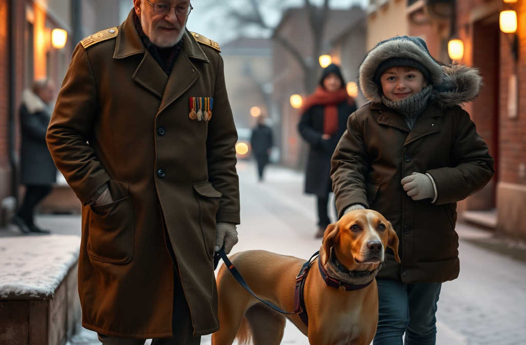 И по вечерам во дворе можно увидеть необычную компанию пожилого мужчину в парадной форме, подростка, и старого рыжего пса.