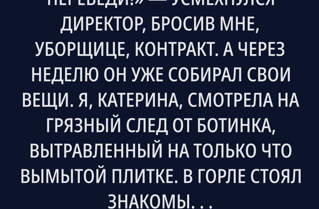 «Ну что, если такая умная переведи!» усмехнулся директор, бросив мне, уборщице, контракт. А через неделю он уже собирал свои вещи.
