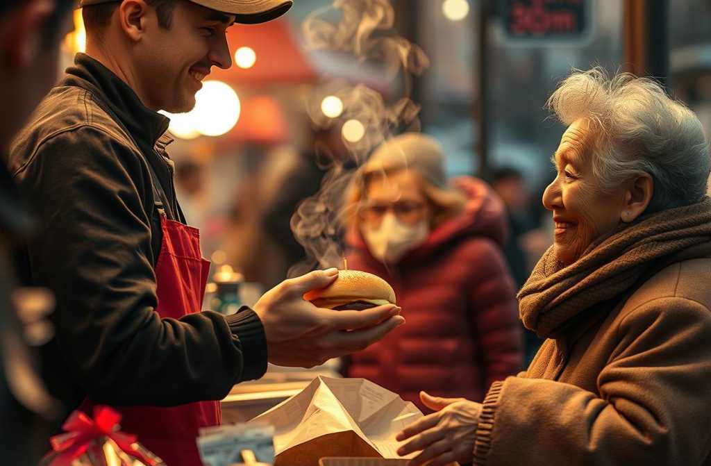 Юноша, работающий у киоска, остановился. Шум города притих на мгновение. Он посмотрел на её дрожащую руку и деньги, которые говорили больше, чем тысяча слов. В следующую секунду его мысли перенеслись к собственной бабушке, той, что подгоняла его к дому с горячей кашей и сыром, отламывая кусочек мяса и кладя его в его тарелку, шепча: «Тебе нужна сила, сынок».