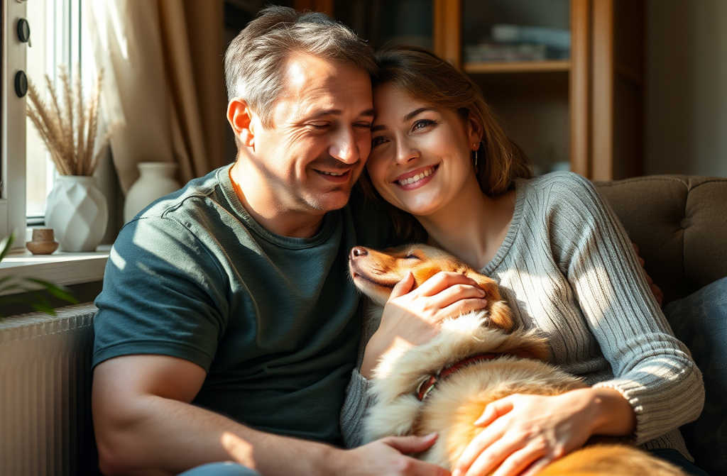 Олег теперь просыпается не от будильника, а от того, что Лада нежно касается носом руки. Как бы говорит: вставай, хозяин. И он идёт на кухню с улыбкой.