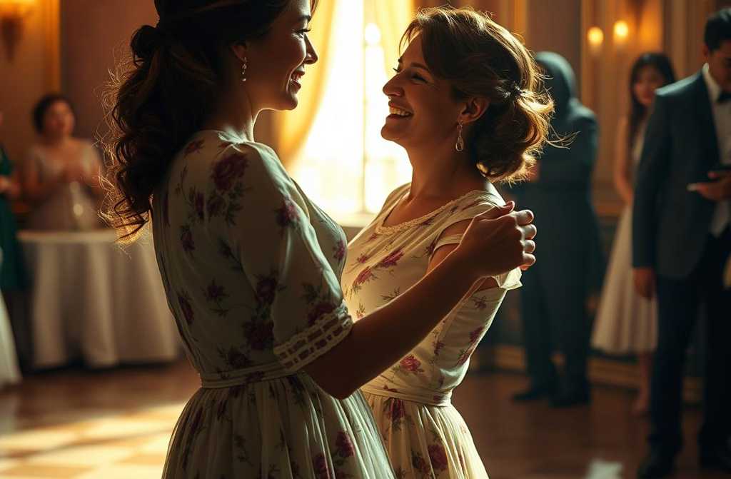 Аглая, в дряхлом цветочном платье, одолженном у подруги, нервно сжимала руки в коленях, глядя на незатронутый бокал шампанского на столе. Платье, блеклое от стирки, едва скрывало усталость в её глазах. С другой стороны зала пары плавно крутились под золотыми канделябрами, а шепот, будто ястребы, охватывал столы.