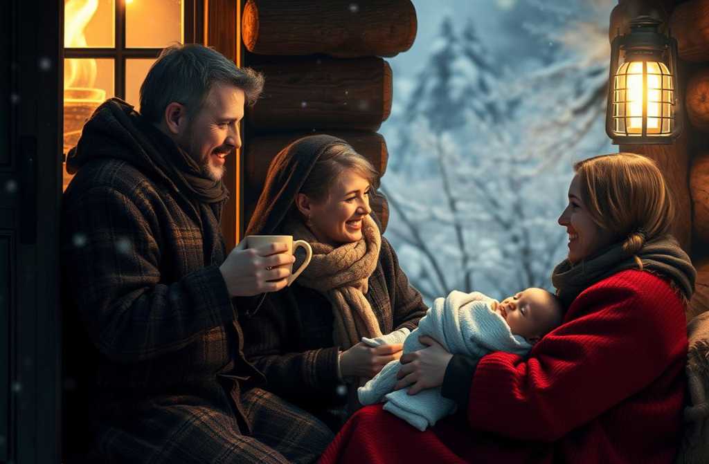Аглая отдала ребёнка Григорию, счастливо улыбнулась, и слёзы радости наполнили её глаза.